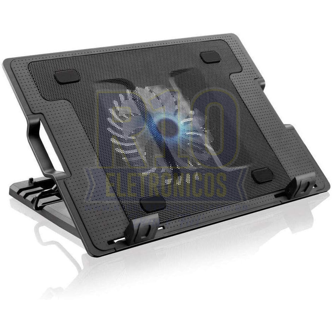Suporte base notebook ate 17" com cooler E LED KP-9013 preto Pode ser utilizado como base ergonômica enquanto refrigera seu Notebook, com ajuste de altura e superfície anti derrapante e fan silenciosa de 140mm e tela mesh com desing que promove maior fluxo de ar.
