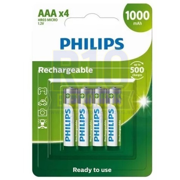 PILHA PHILIPS RECARREGÁVEL AAA C/4 1000MAH R03B4RTU10/97 1000 CARGAS