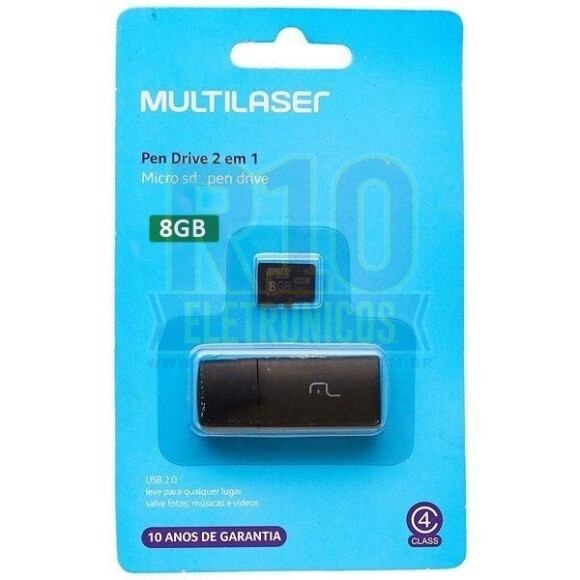 en Drive Multilaser MC161 2 Em 1 Cartão Micro SD Leitor USB 8GB